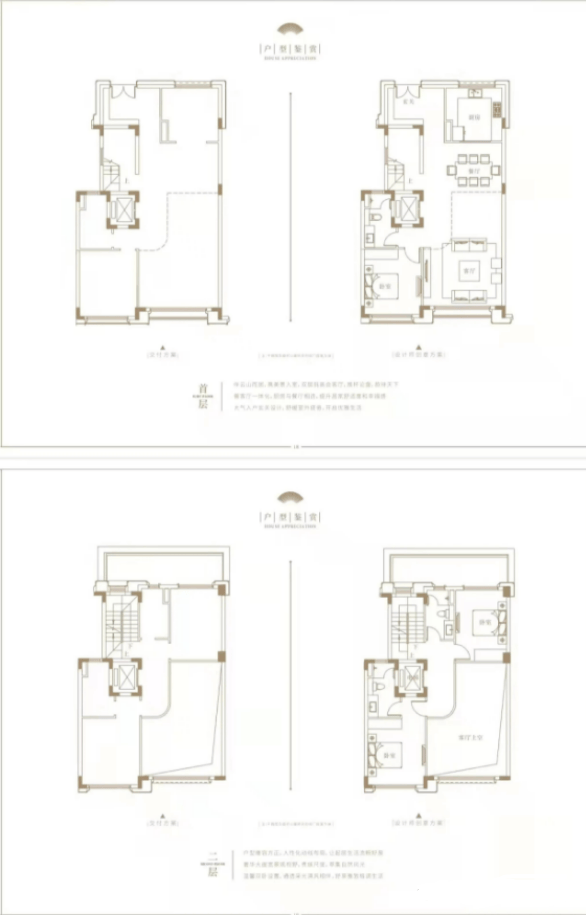 建面266-306㎡联排四房两厅四卫为毛坯交付,双首层设计搭配8米层高地下两层