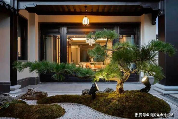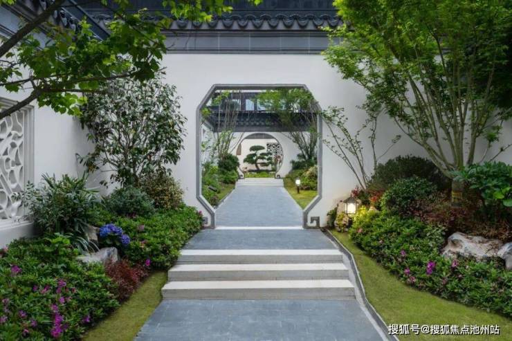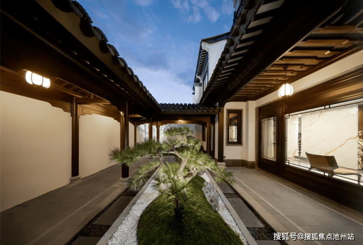 “池上碧苔三四点,叶底黄鹂一两声。”合院的景观设计意于营造中式园林之意趣,结合建筑空间,创造移步异景的感官体验,让人们感受传统园林之美;别墅内部另设私家园林,自有一番古人之乐等待探索。