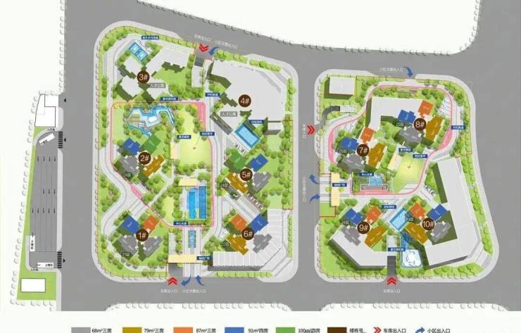 项目分为2期开发建设,总占地约4万㎡,建面约18万㎡,共建设10栋21层到26层不等的高层住宅,采取两梯六户设计,其中3、4栋为人才房。