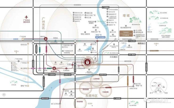 自驾——济广高速三江出口5高速(规划中)30分钟从天河到增城,1小时湾区经济圈。