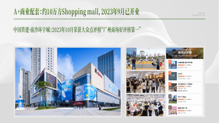 【商业】10万平方米高端Shopping mall(中国铁建南沙环宇城),2023年9月已开业。