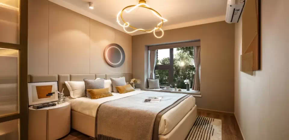 除此之外,建面75㎡户型还打破了人们对传统紧凑户型的认知,不仅做到了全明双通透,还配置有超过普通同类产品的大主卧和大次卧,主次卧面积分别达到了约12㎡和9㎡,满足人们对舒阔居住空间的需求。
