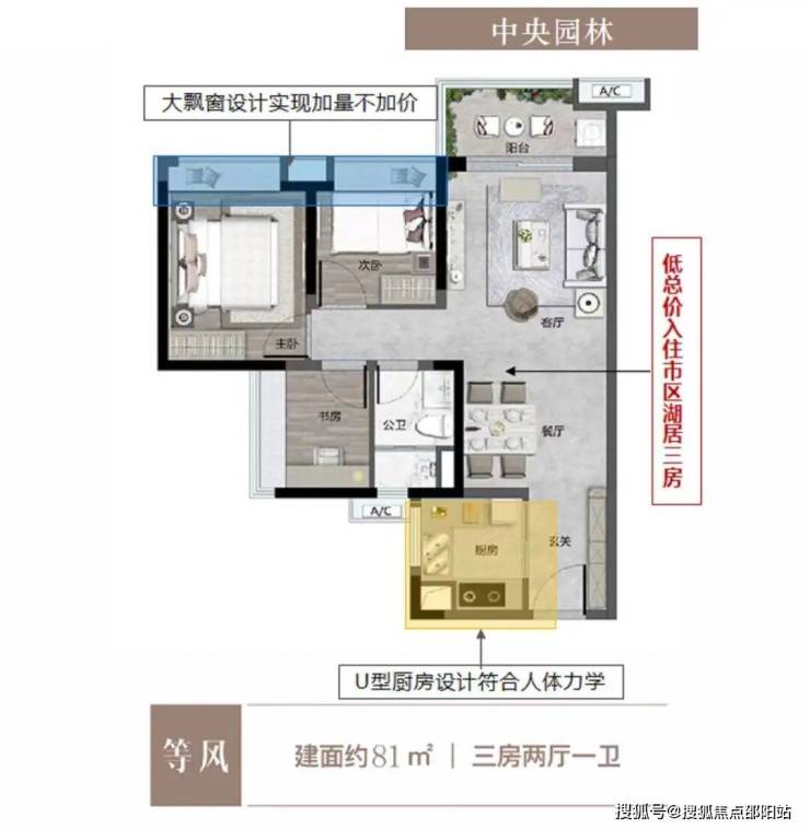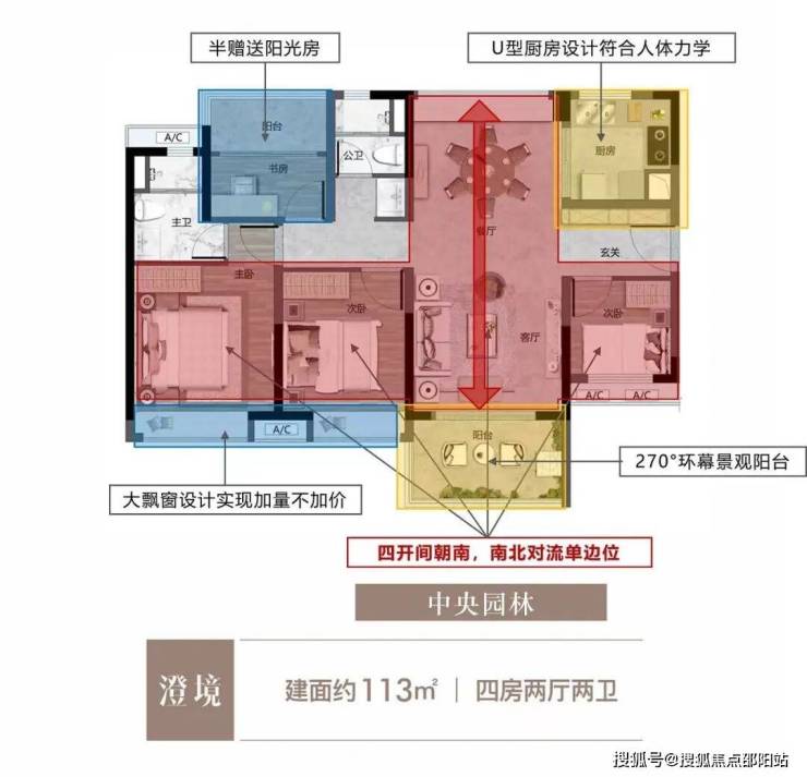【113㎡四房二厅二卫】双厅南北对流,大飘窗设计,享受极致开阔!