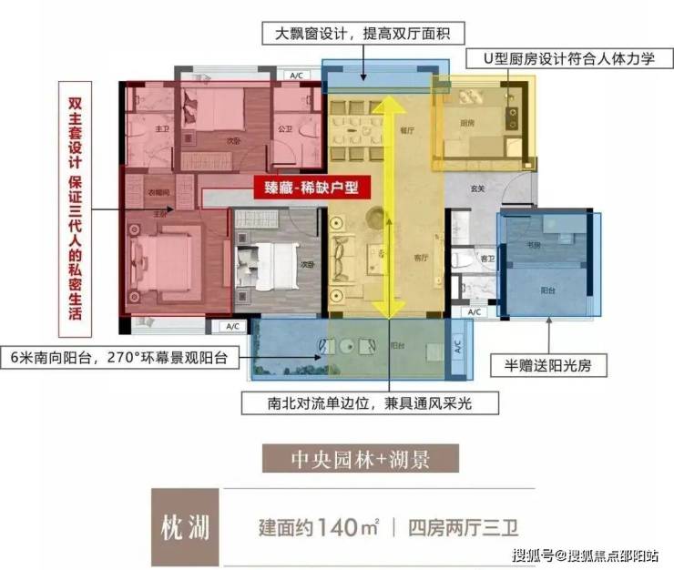 【140㎡四房二厅二卫】四房双主套,6米大阳台,望湖极致景观面!!