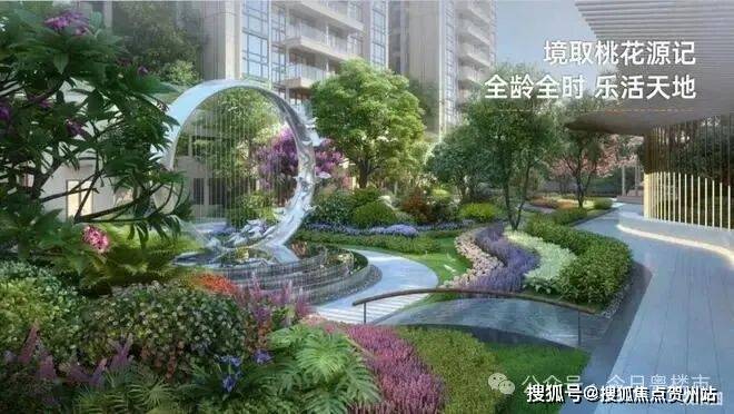全龄全时 乐活天地:以桃花源记为园境蓝本,以闹市-叩山-寻幽-觅趣-入谷为景观流线,营造世外桃源式的入谷寻幽意境,于城市喧闹中自有一番雅园静谧。更以多元生活场景嵌入社区景观中,沿阶花池、雕塑水景、休闲长廊、屋顶花园,并打造专属儿童天地,打造全龄段的家庭乐活天地。