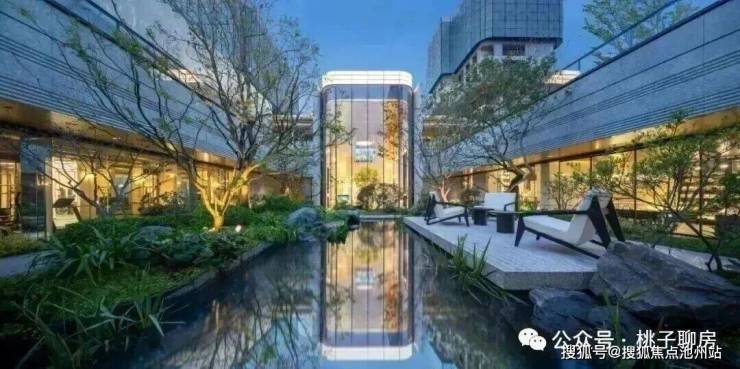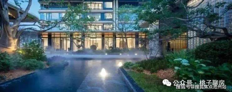 玉湖之星传承千年的玉润文脉,在材料动用上,突出玉、白、润、贵的格调,从钟鸣显赫的主入口,到泛会所、下沉式庭院、背景墙,大量选用贝金米黄石材、海浪灰花岗岩、水纹玻璃等景观材料,而且用了大量复杂的弧形和拉槽工艺,和立面相呼应。