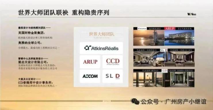 盛邀全球知名设计团队:阿特金斯(全球工程设计定鼎者)、奥雅纳(全球地标建筑设计主导者)、AECOM(世界建筑巨擘)、梁志天(现代简约之父)、CCD(全球顶奢酒店第一设计)等世界鼎级设计团队联袂,同频世界的审美,为广州带来璀璨惊艳的地标之作。