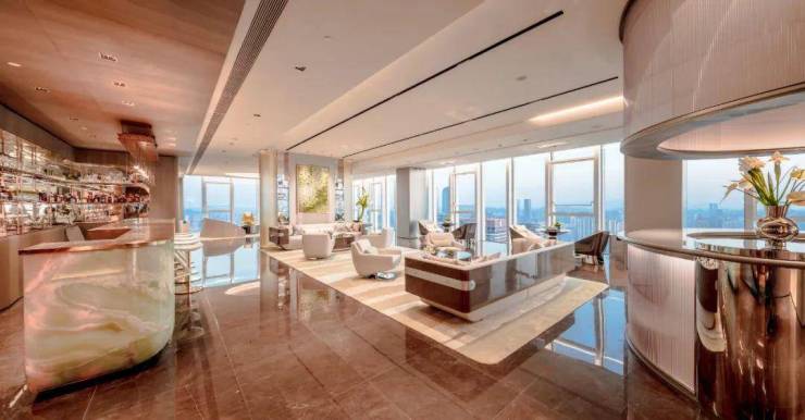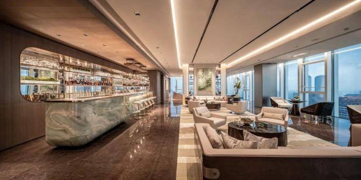 内部设施:七大垂直都会场景,包括25米恒温泳池、1500㎡云端观景台、私人影院、健身BOX、商务会客厅等136。