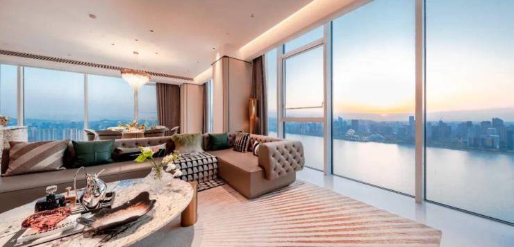 天幕平层:约350-400㎡户型,4.2米层高,全景落地窗设计,实现“江景+城市地标”双重视野679。