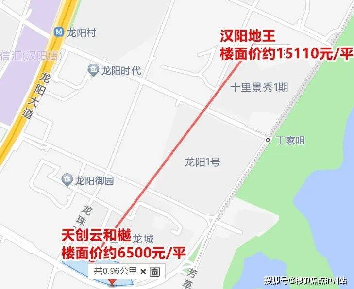 而仅仅1公里不到的汉阳地王,楼面价约15110元/平,天创云和樾的楼面价,连隔壁一半都不到!