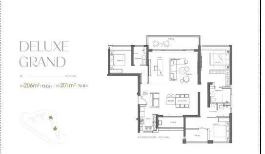 极致户型更新塔尖体验建面约142-208㎡大平层实现了视野、尺度、交标上的三重突破。