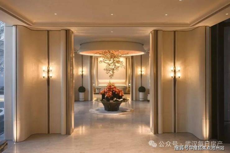 沉香米黄石材以温润不张扬的古典气质,铺就归家大门的礼仪;贝金米黄石材铺陈的浅金纹理,陪衬时间的优雅,心绪已开始流转;水云纱石材营造的流动的山水画卷,似一股清冽的江城文脉缓缓而流。