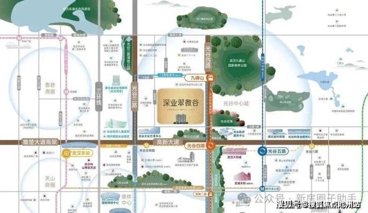 【深业翠微谷】毗邻高新大道与光谷四路,占据万亿级经济命脉与生态景观发展的"黄金十字轴芯",繁华与自然交汇地