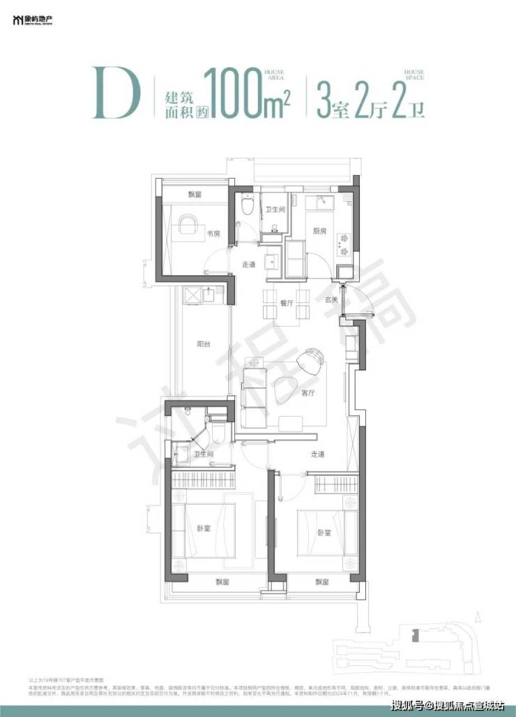 项目高层产品均为100㎡左右3房户型,一梯6户:
