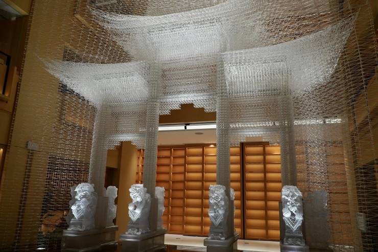 在这个中庭空间中,一座透明镂空的“光启之门”艺术装置引人注目。“光启之门”根据土山湾博物馆镇馆之宝土山湾牌楼进行艺术化再造,通过3D打印建造技术演绎中国传统建造工艺。