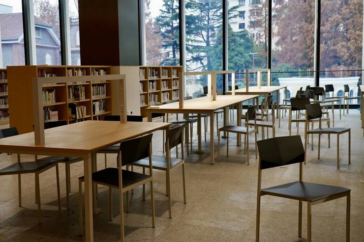12月16日,澎湃新闻记者提前探访了这座徐家汇的文化新地标。书院由西岸美术馆设计师、英国著名建筑大师大卫·奇普菲尔德担纲设计,混凝土米色幕墙朴素典雅。书院总建筑面积18650㎡,地下二层,地上三层,共有近800个阅览座席。从二楼、三楼的景观阅读位抬眼望去,徐家汇天主教堂、百年徐家汇观象台、上海现存最早的近代图书馆徐家汇藏书楼尽入眼底。