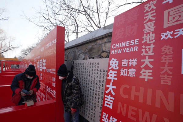 新年写福字,得福有福气。清代皇宫过年有个习俗,每当新年之际,皇帝总要亲笔书写一些“福”字,寓意迎新纳福。今年圆明园开展“祈福迎新”活动,在拾光买卖街新增“五帝书福”祈福牌楼,游客可以在这里写福字、挂福牌,了解五帝书福的故事。