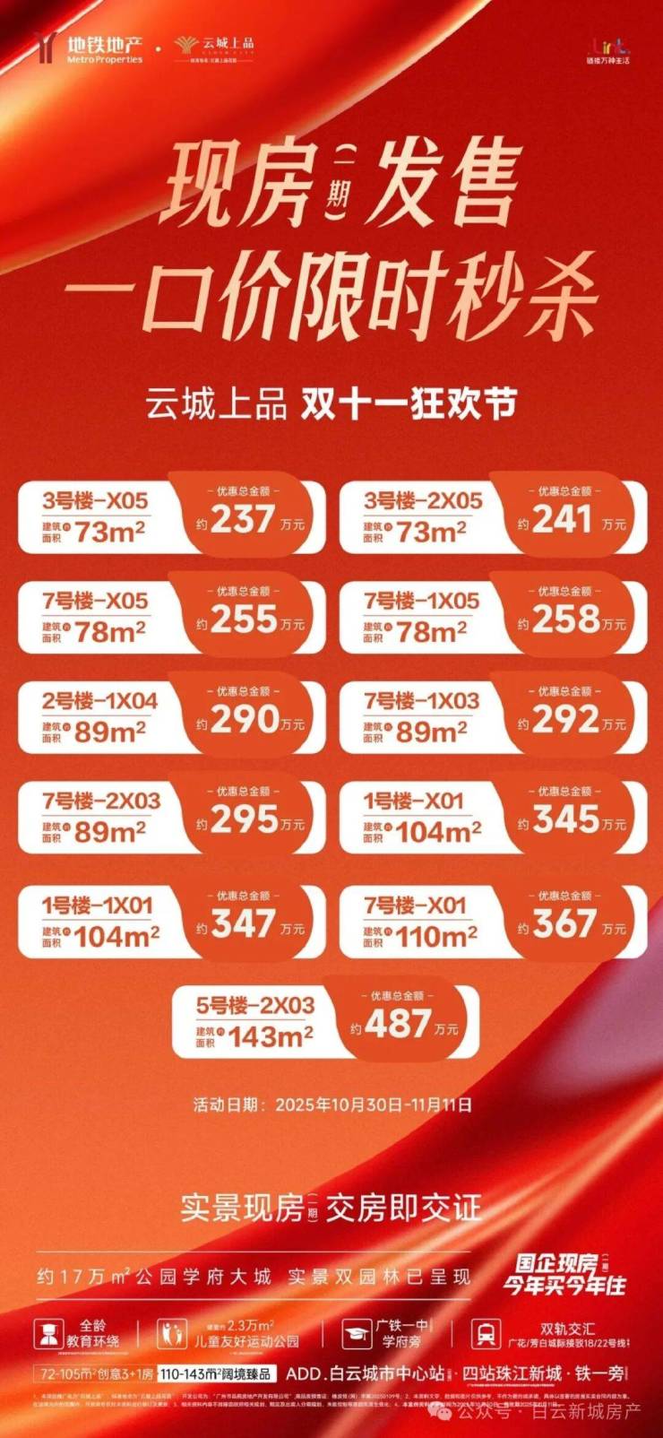 项目作为广州地铁地产自主开发标杆项目,以“公园里·都市里·学府里”为设计理念,充分利用了与轨道交通站点的合建优势,规划打造专属归家通道,以白云城市中心站为核心圈,致力打造步行即享理想舒适的城市生活空间,可谓是城市精英们的置业优选。