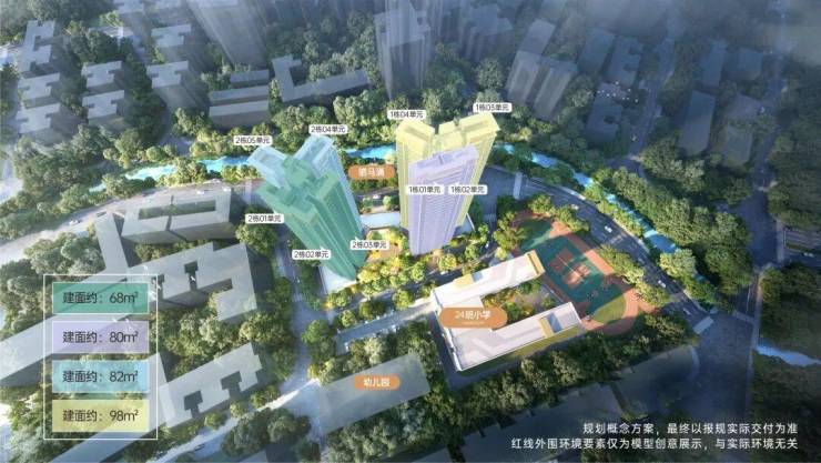 两栋楼,提供272套住宅,户型涵盖68至98平方米的南向三房或四房空间。