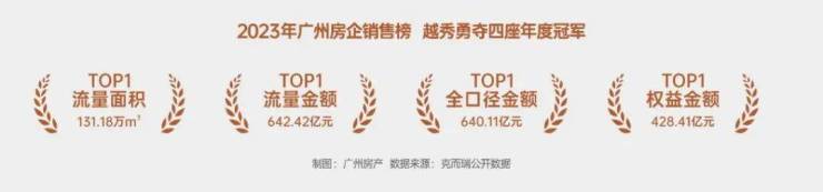 国企龙头越秀地产,中国企业500强,2021-2023年连续三年荣获广州房企销售金额TOP1。(数据来自克而瑞)