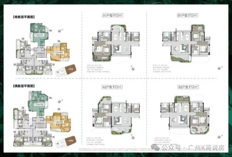 偶数层84方空中花园面积更大,有24个方。