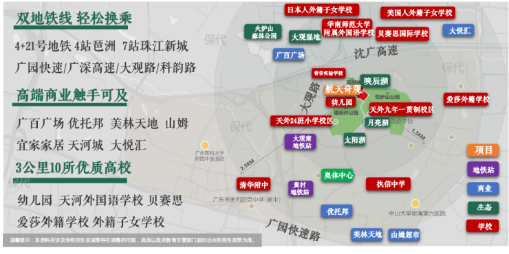 :高效通勤珠江新城、金融城、琶洲(珠金琶),地铁(具体线路未明确)、快速路网交织,实现“CBD工作,湖居生活”的自由切换。