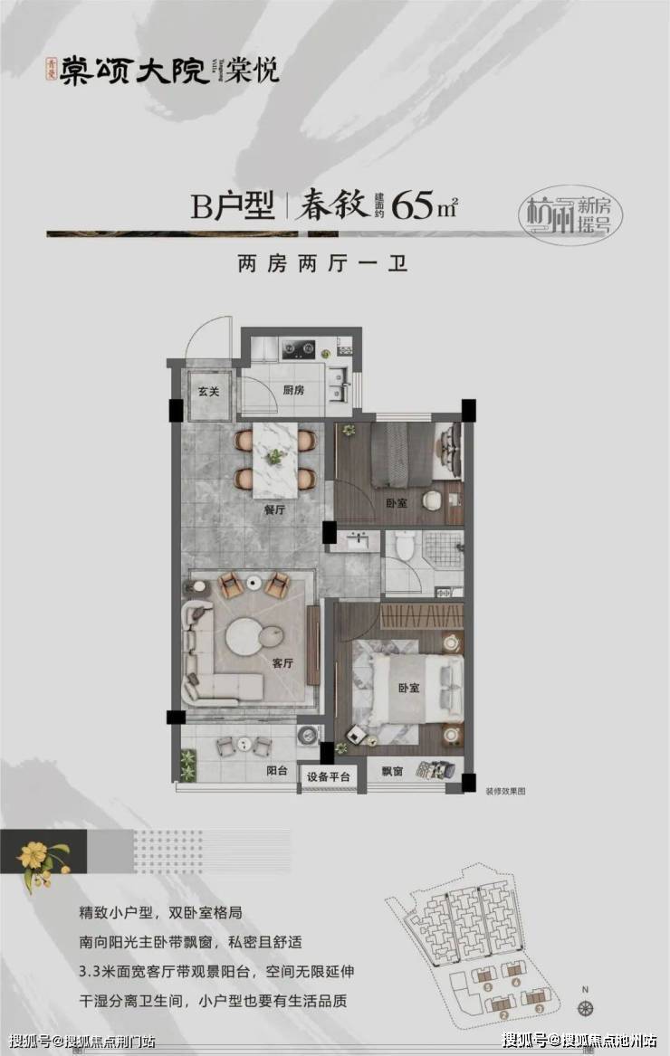 3.3米面宽客厅带观景阳台,空间无限延伸,干湿分离卫生间,小户型也要有生活品质