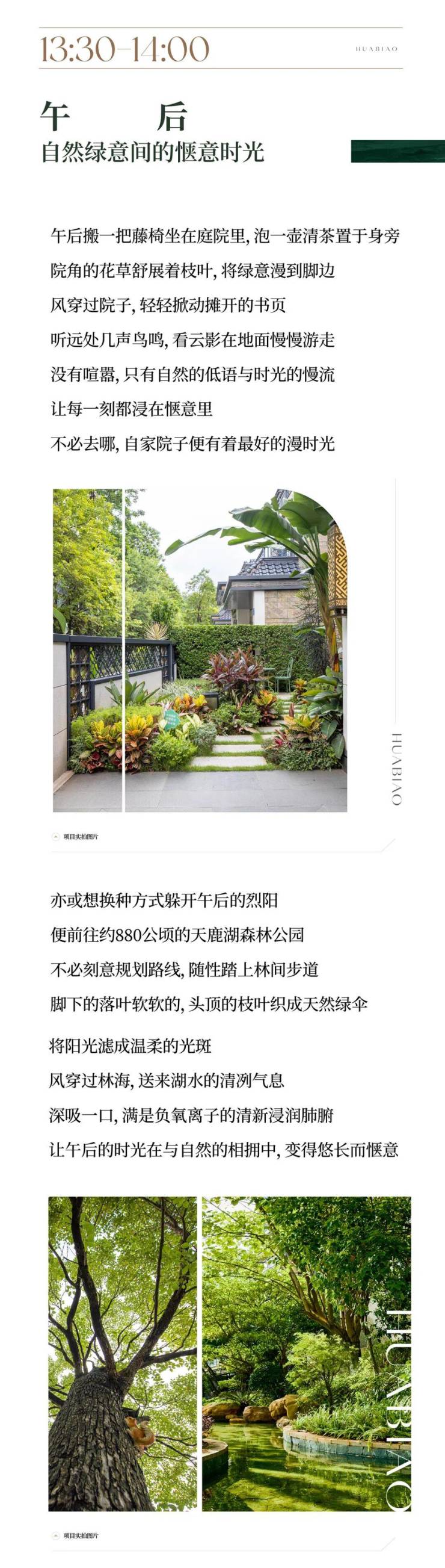 为了不辜负天赋自然资源的加持,华标·峰湖御境耗资过亿重金打造臻美山水园林,约300年的十八学士白茶花、18棵加拿列海枣树、100多种开花树种……于社区内万木竞秀,一步一景。在自然的畅快呼吸之间,使身体获得天然调理,让健康回归本真。