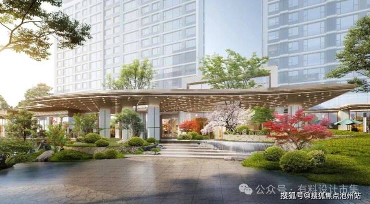 主入口处精心打造奢华门庭,融合现代材质与东方意境,流线型顶棚如云卷云舒,营造仪式感;青石铺地、迎宾绿植,一步一景,礼序归家。这不是一个简单的入口,而是一场关于生活美学的启程。