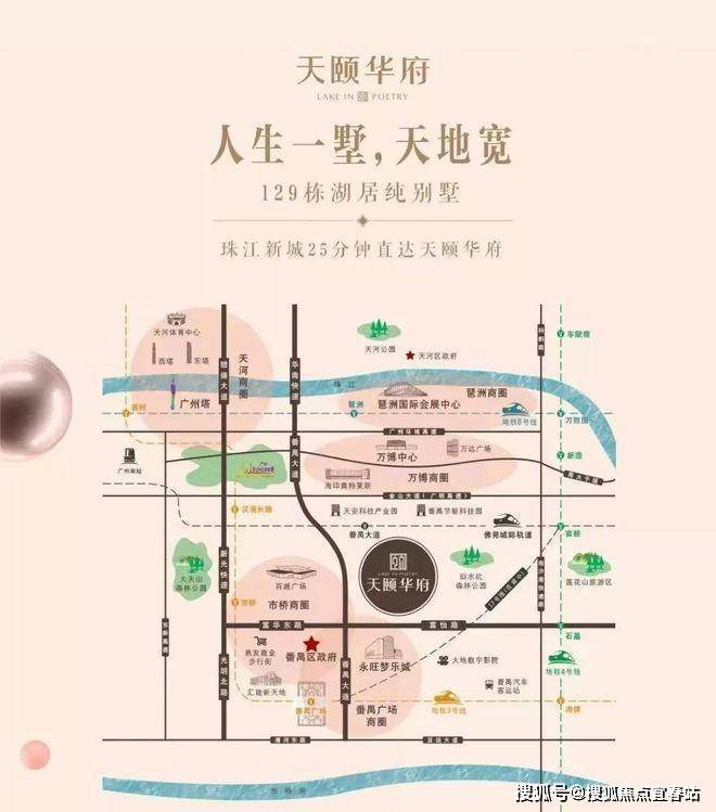作为番禺广场板块唯一纯别墅,天颐华府于天赋地脉之上,集萃一城精华。北接广州第四CBD万博板块,南承对外开放门户枢纽南沙自贸区,东靠番禺创新经济与产业开发板块,西连南站板块。