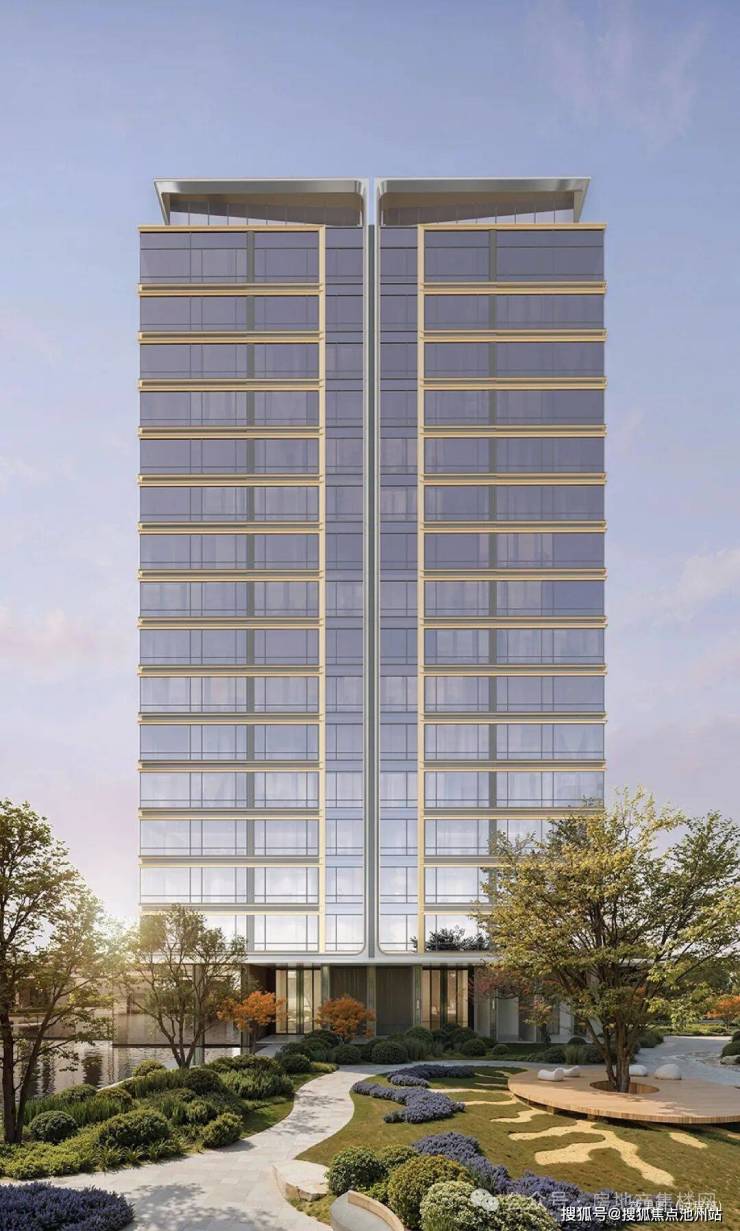 三面大尺度玻璃和铝板,270°无柱转角飘窗设计,公建化极简建筑风格、超流体屏立面,勾勒建筑的轻盈之姿,呈现与岛屿共生的悬浮质感。