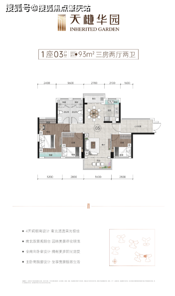 1、约93㎡——3房2厅2卫2阳台,南北对流