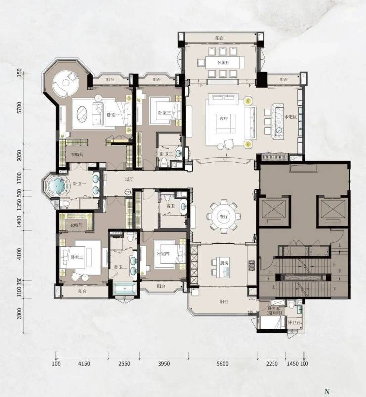 星河湾·半岛五號的户型设计堪称一绝,尽显奢华与匠心。项目推出 236 - 398㎡湾芯江岛大平层,更有亿级空中复式、千平尊邸 1200 - 1600㎡等奢华产品。以十字中轴布局为基础,确保每户都能享受南北通透的江园双景,让自然光线与清新空气在室内自由穿梭。其中,236/264/317/398㎡的湾芯江岛大平层,空间布局合理,功能分区明确,既满足了居住的舒适性,又彰显了主人的尊贵身份。亿级空中复式和千平尊邸更是将奢华演绎到极致,为追求极致生活品质的客户提供了独一无二的居住体验。而且,样板房即交楼标准,所见即所得,让客户购房无忧。