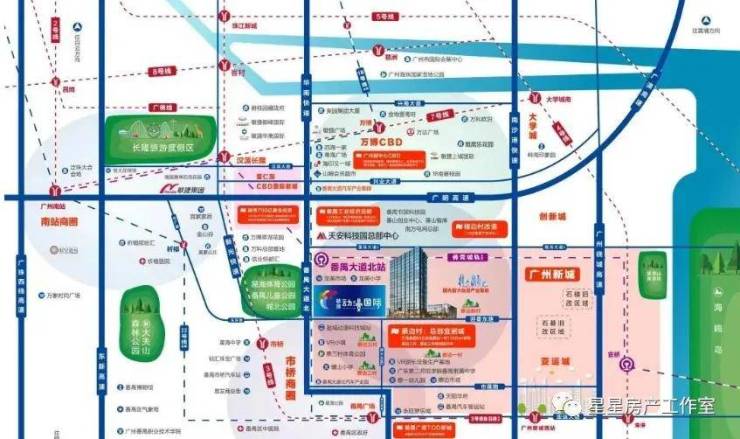 产业规划:项目位于番禺的动漫产业中心基地, 紧邻两大知名动漫交易中心,将沿番禺大道打造一条高端产业集聚带和城市形象展示带,带来大量就业人流。