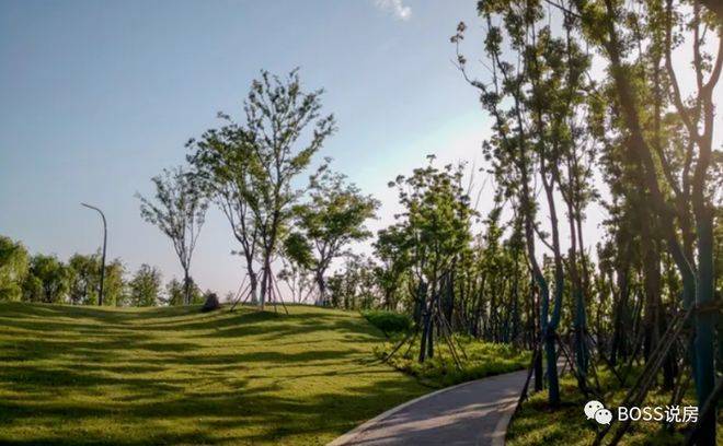 记得那天下午,我特意去看了园区的园林。正值午后三点,阳光正好,光影在树木间投下长长的影子。我走在那个约680米的环形健身漫道上,脚下的触感细腻而扎实。两旁的植被层次分明,有的高大挺拔,像是沉默的卫士;有的低矮繁茂,像是温柔的裙摆。风吹过的时候,树叶沙沙作响,夹杂着花朵淡淡的清香,深吸一口气,肺腑里仿佛都充满了能量。这种时刻,你会觉得时间好像变慢了,慢到你可以清楚地说出叶片上脉络的走向,慢到你能听见自己的心跳声。在这里,时间不是用来追赶的,而是用来感受的,用来“浪费”在美好的事物上的。