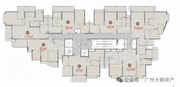 项目的整体货量并不多,总层高25层,3梯7户,主打建面约82-123平三至四房,其中建面约123平四房货量最少,全盘仅23套,虽然项目是新规前地块,但户型整体使用率也在100%以上。