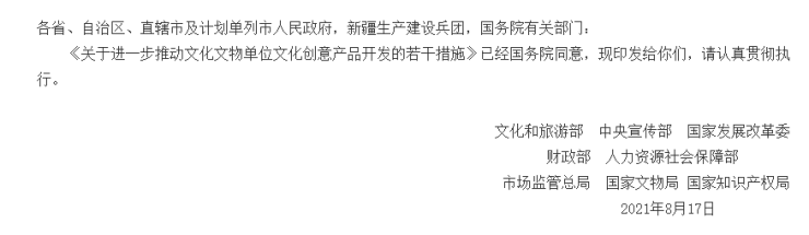 依托文化文物单位馆藏文化资源加强文化创意产品开发工作,有利于推动中华优秀传统文化创造性转化、创新性发展,有利于培育和弘扬社会主义核心价值观,有利于社会主义文化强国建设。《国务院办公厅转发文化部等部门关于推动文化文物单位文化创意产品开发若干意见的通知》(国办发〔2016〕36号)印发以来,文化文物单位按照要求推动文化创意产品开发,取得了一定成绩,但也面临试点政策落实没有完全到位、激励机制有待完善等问题。为深入贯彻落实习近平总书记关于繁荣发展文化事业和文化产业的重要指示精神,进一步推动文化文物单位文化创意产品开发,经国务院同意,提出以下工作措施。