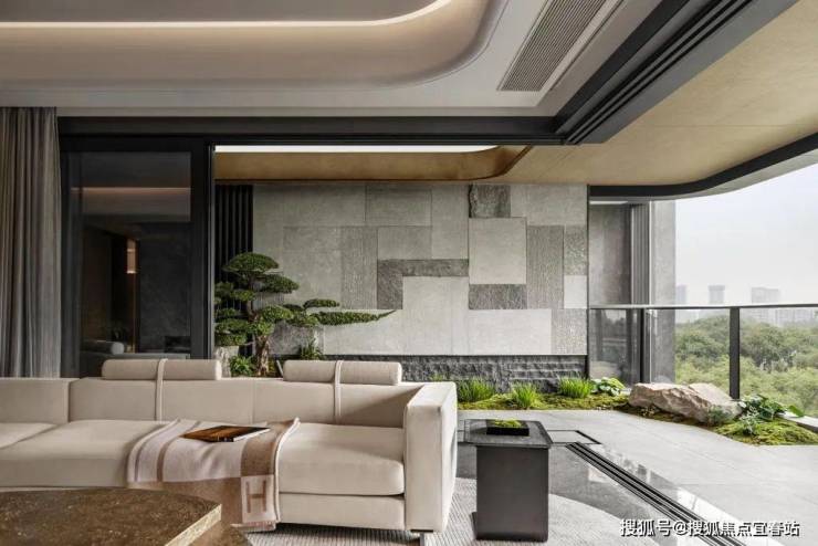以270平户型为例,它将别墅才有的庭院内置到阳台,在空中花园内种树造景。