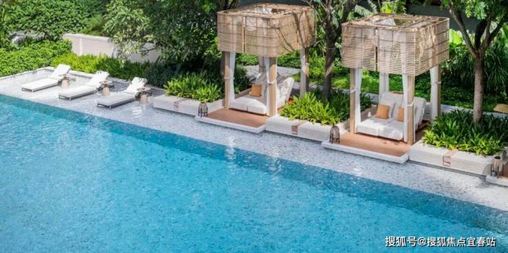 林下泳池CLUB涵盖亲子按摩池与家庭泳池,兼具社交、休憩与观景功能;池畔亭廊与休闲座区隐于热带林木之间,流水与绿植共奏度假舒缓旋律。