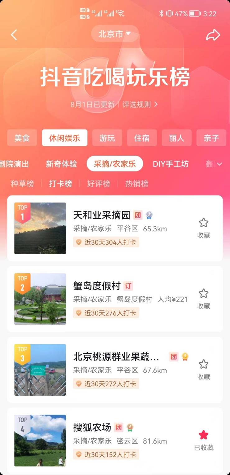 这个夏天,星野庐露营基地和搜狐农场迎来一波又一波网红打卡热潮,吸引了大量粉丝的关注。在抖音休闲娱乐榜,搜狐农场高居全北京第四名,在30天内拥有上百名用户前来打卡,并在全网进行分享和“安利”。