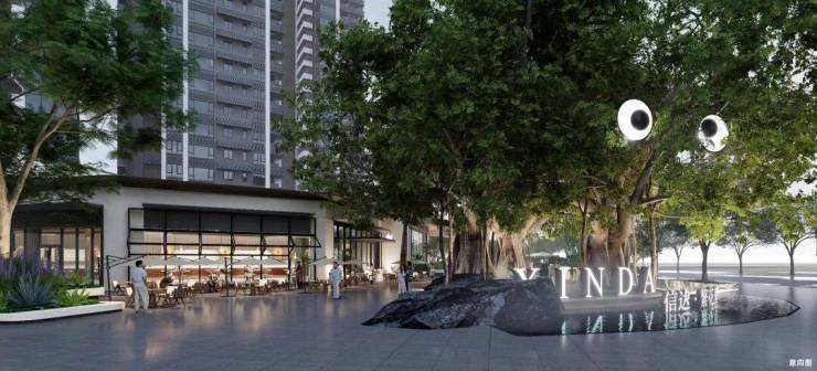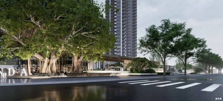 大门处保留百年榕树,打造休闲空间“榕悦广场”,休闲社交超自在!