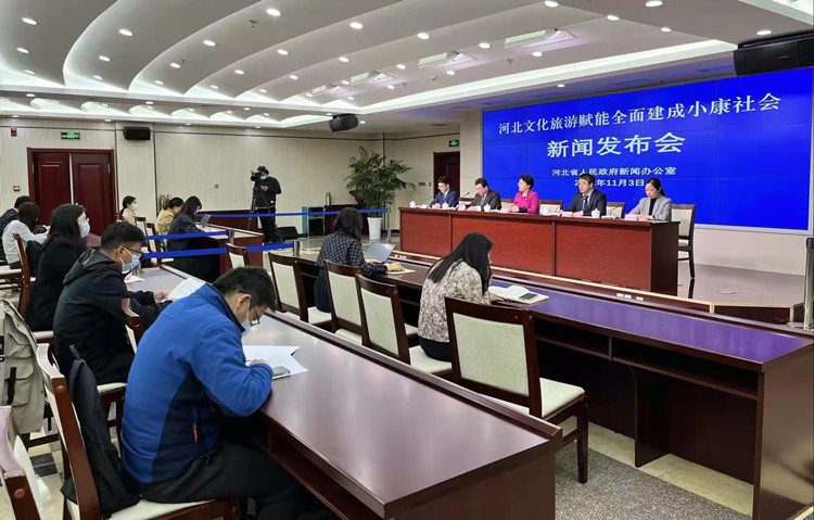11月3日,河北文化旅游赋能全面建成小康社会新闻发布会在河北省人民政府新闻发布厅举办。河北省文化和旅游厅党组成员、副厅长、新闻发言人王荣丽出席发布会并发布相关情况。河北省文化和旅游厅艺术处处长刘浩琳、公共服务处处长任海峰、资源开发处处长丰春雷出席发布会并回答记者提问。