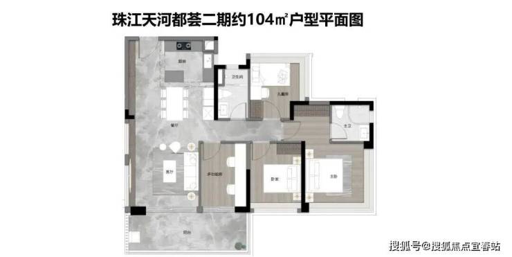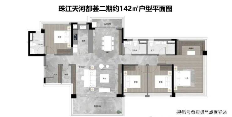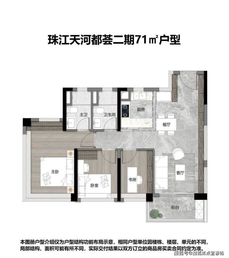 约71㎡ 3空间2卫,天河罕见户型,生活起居更从容