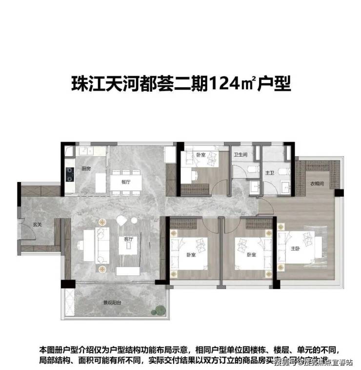 【约124㎡ 4空间2卫】空间平权,南向卧室均可放1.8m大床