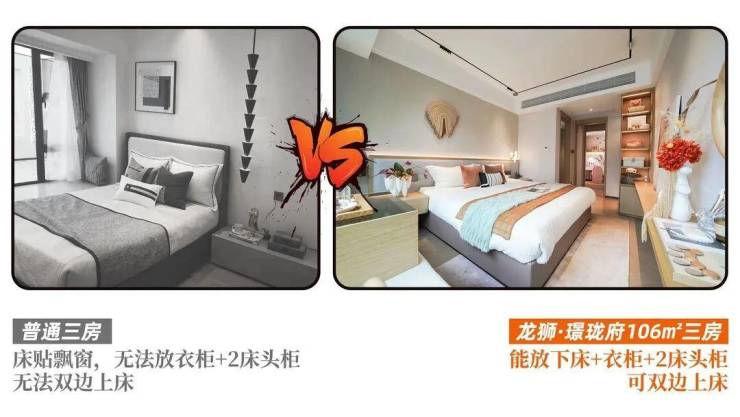 市面上常见四房基本都是单套房设计,但是龙狮·璟珑府考虑到了现代家庭的使用习惯,预留两个套房。