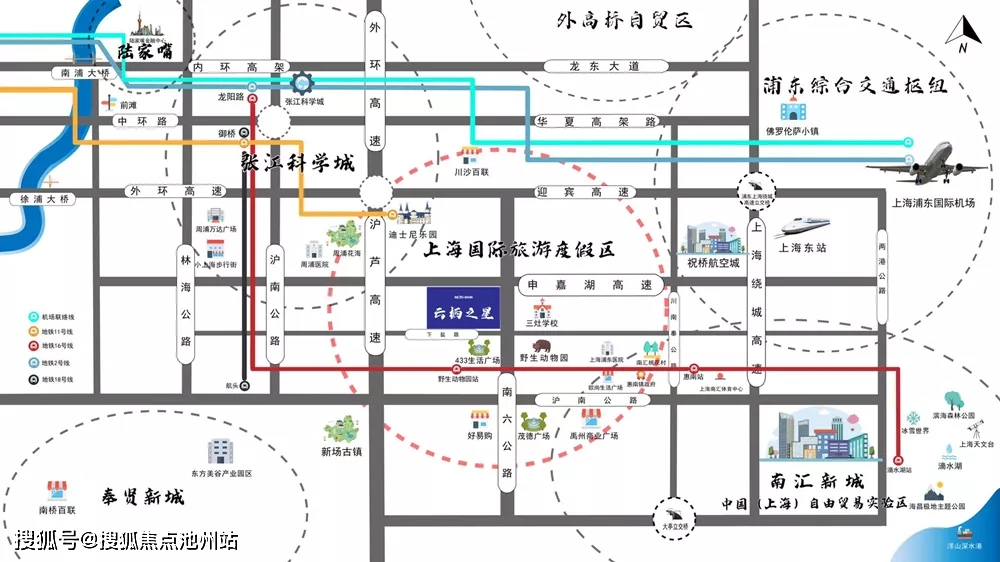 【云栖之星】位于浦东新区宣桥镇,即属于祝桥-惠南城镇发展 圈(浦东综合交通枢纽辐射范围),同是又属于国际旅游度 假区城镇规划范围内,浦东综合交通枢纽i、上海国际旅游度假区双规划所带来的人口、产业、升值空间已注入强劲的发展动力。浦东综合交通枢纽,上海国际旅游度假区、上海自贸区、 张江科学城城、陆家嘴金融城为浦东新区2035规划中的五大区域规划发展策略,同时兼顾国家从科技、金融、交通、贸 易、旅游多项发展的严峻使命。纵观浦东,项目处于规划发展的中轴之地。古有五省通衢乃兵家必争之地,今有云栖之星立于浦东中轴,尽享区域发展 之利好。