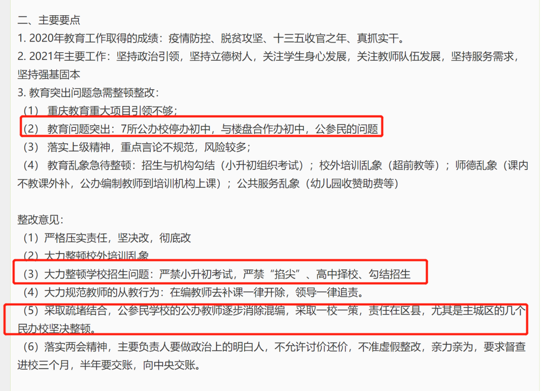 3月22日,2021年重庆教育工作会议召开,提出的几大急需整顿整改问题和整改意见,引发了全市家长、楼市从业者的热议:
