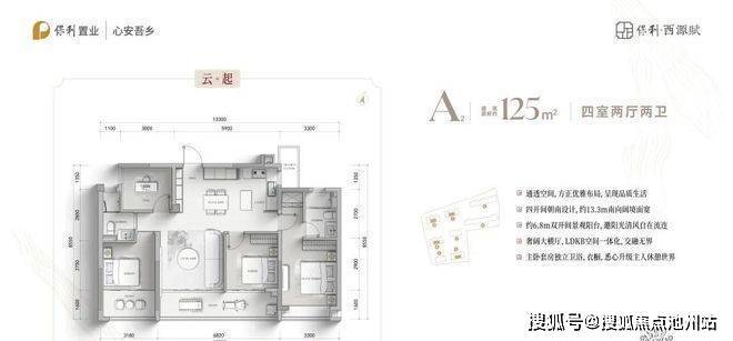 户型信息:主力户型为建面约 125-168㎡的观景大宅和建面约 230-310㎡的隐奢院墅。其中,建面约 125㎡户型为四房两厅两卫,拥有约 6.8 米阔景观阳台,南向面宽约 13.3 米;建面约 139㎡户型同样是四房两厅两卫,采用三阳台设计,可呈现 270° 无界视野。