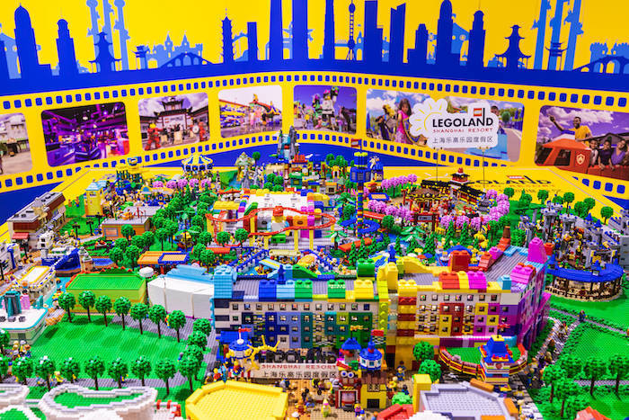 上海乐高乐园度假区概念设计模型,基于上海乐高乐园度假区园区概念设计图纸、由近10万颗乐高积木搭建而成。该模型由来自世界各地的11位默林魔法制造团队设计师和29位乐高模型拼砌大师,历时半年完成,以1比220的比例展现了上海乐高乐园度假区,例如乐高城市、积木街道等核心特色主题片区。