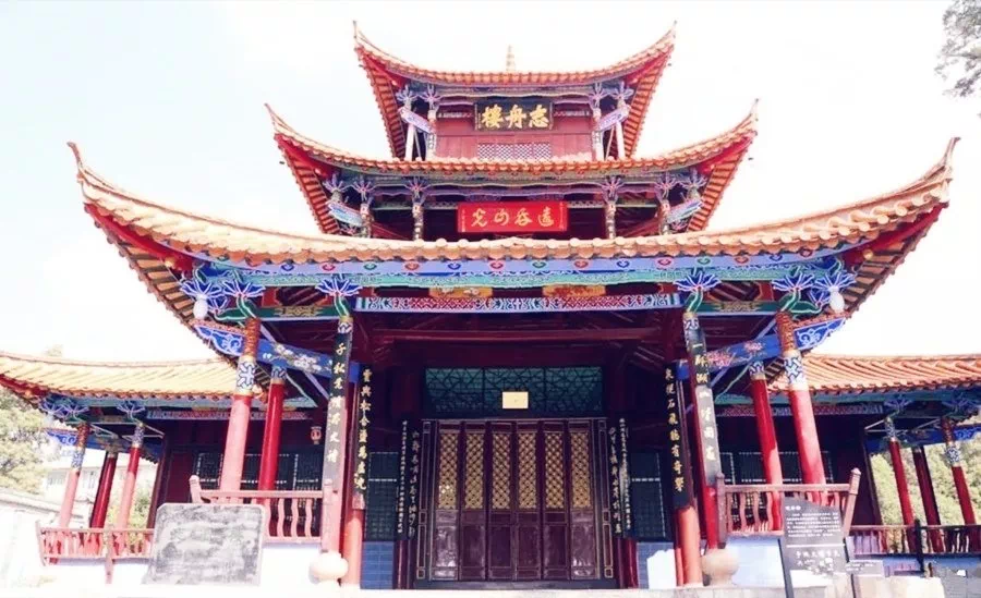 志舟楼位于云南省澄江县城北凤山公园内,清康熙年间,澄江知府张圣治曾在此建万寿宫,起盖阁亭,栽花植木,后几次修整,有了一定的规模,由于历史的更迭,万寿宫时盛时衰,到清末渐废,直至残破毁灭。人们对此地绚丽多姿的景色恋恋不舍,清新的空气逗人喜爱,还是游人不断,引人入胜。